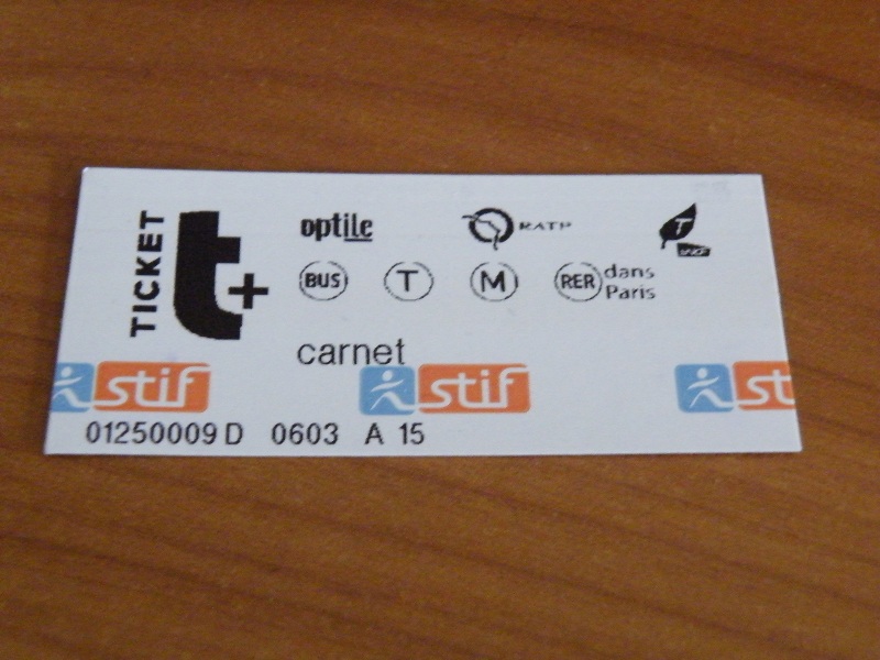 T + jest to najtańszy, pojedyńczy bilet komunikacji miejskiej ważny w 1 i 2 strefie, czyli w historycznym centrum Paryża i jego okolicach, kosztuje 1,70€. Dzięki niemu możemy korzystać z metra, autobusów i kolejki RER. Bilet jest ważny przez dwie godziny od momentu skasowania i pozwala na przejazd z wieloma przesiadkami metrem i/lub RERem w dwóch pierwszych strefach. Przesiadając się z metra na autobus lub zmieniając autobus na inny musimy niestety skasować nowy bilet. Natomiast przesiadając się z metra na RER lub odwrotnie wystarczy ponownie skasować ten sam bilet przechodząc przez bramkę. Kupując karnet 10 biletów zapłacimy 13,70€ – jest to opcja bardziej polecana i tańsza.