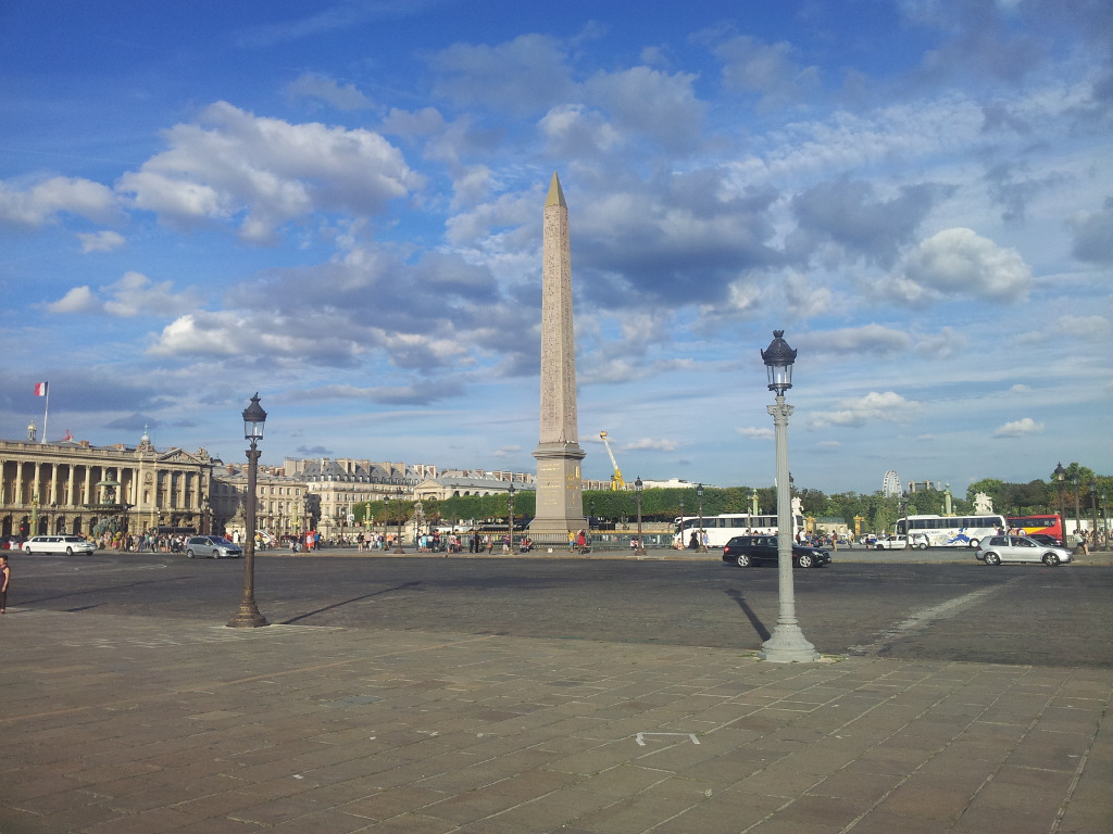 [box style=’note’] Plac de la Concorde znajduje się między Polami Elizejskimi a Ogrodami Tuileries, więc są spore szanse, że natraficie na niego podczas zwiedzania Paryża. Ostatnio przez Palc przejażdżam dość często rowerem, uważając na samochody i próbując ominąć turystów. To dość ruchliwe miejsce… Zobaczymy stamtąd Wieżę Eiffla, a w samym środku Placu przyciąga uwagę egipski obelisk. Uroku temu miejscu dodają fontanny, które niestety nie działają w okresie zimowym .[/box]